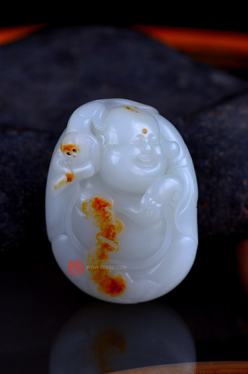新疆和田玉白籽玉 多福多子弥勒 270g