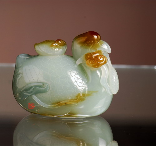 新疆和田玉白籽玉 宝鸭穿莲鼻烟壶