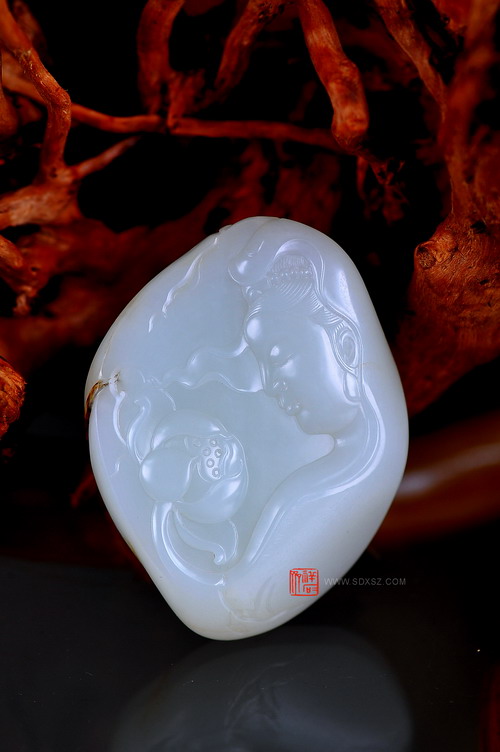 新疆和田玉白籽玉 莲花观音 99g