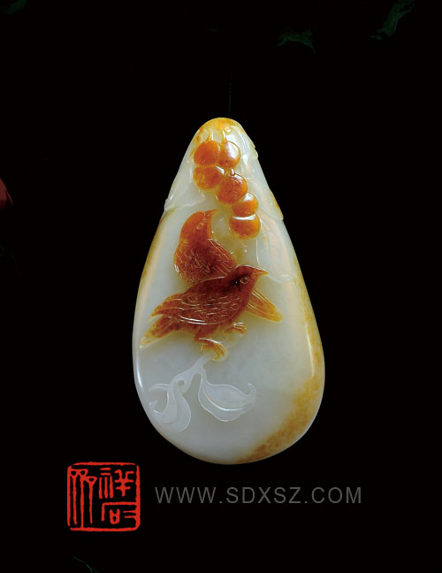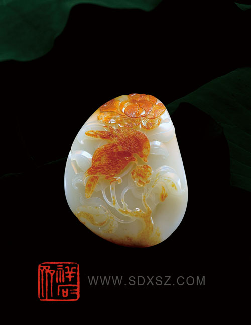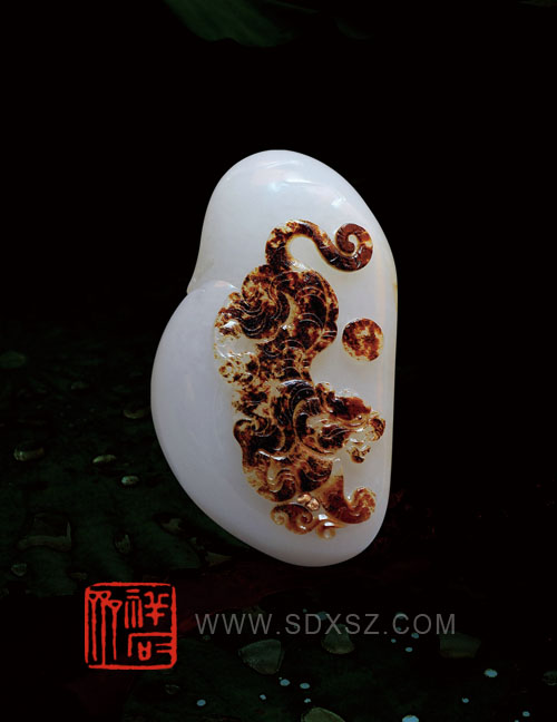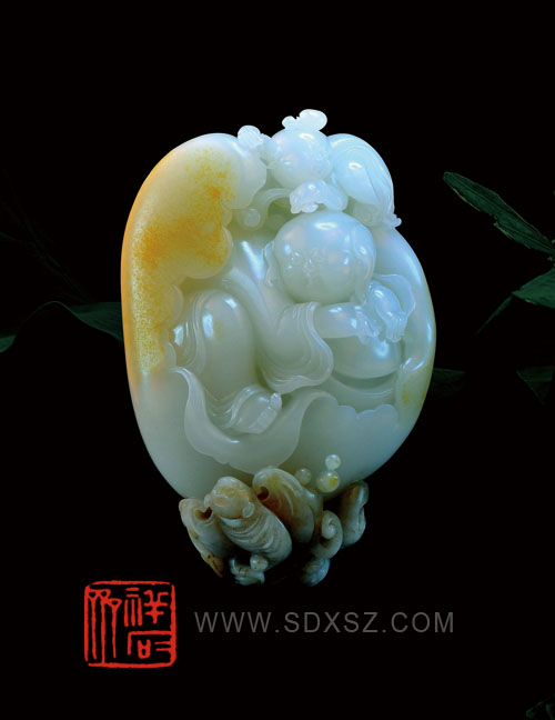 新疆和田玉白籽玉 猛虎戏日 79g