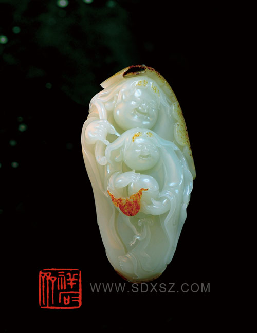 新疆和田玉白籽玉 和合二仙 329g