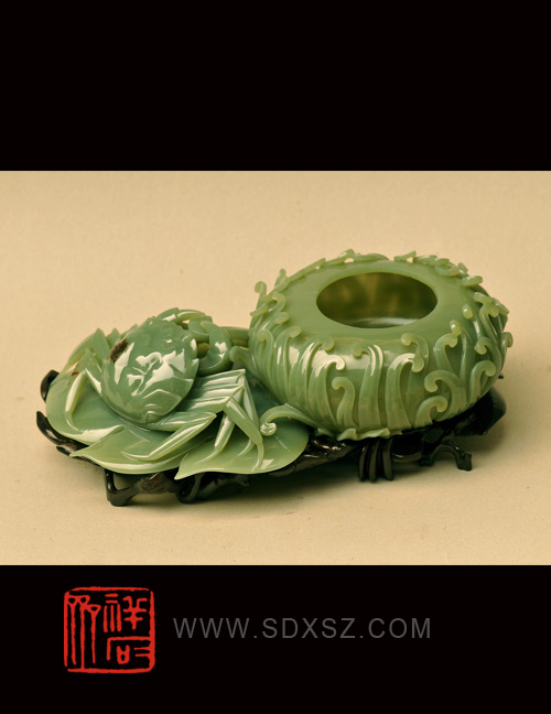 新疆和田玉青玉 菊蟹水洗