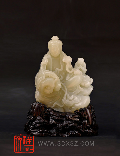 新疆和田玉白籽玉童子拜观音