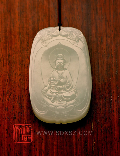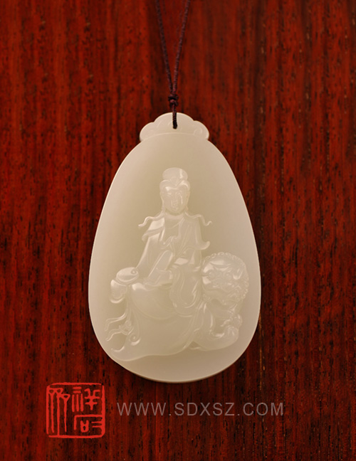 新疆和田玉白籽玉 文殊菩萨牌 53g