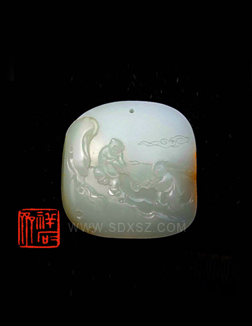 新疆和田玉白籽玉 老子出关牌