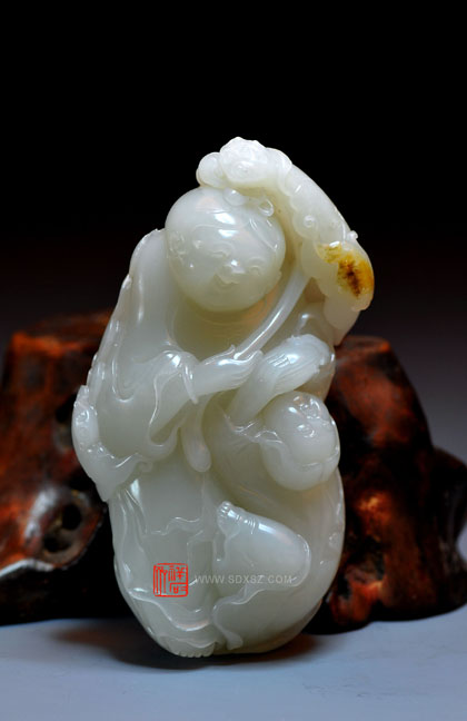 新疆和田玉青白籽玉 和合二仙 141g