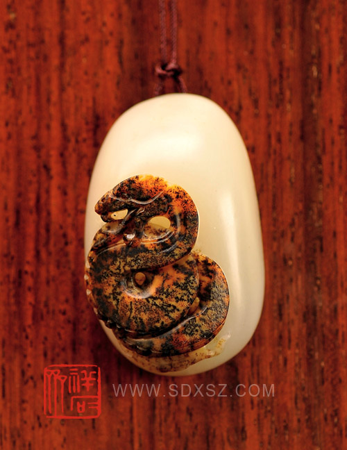 新疆和田玉白籽玉 金蛇献瑞 25g