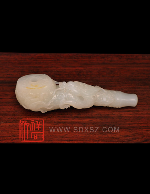新疆和田玉白籽玉 云龙烟斗 115g