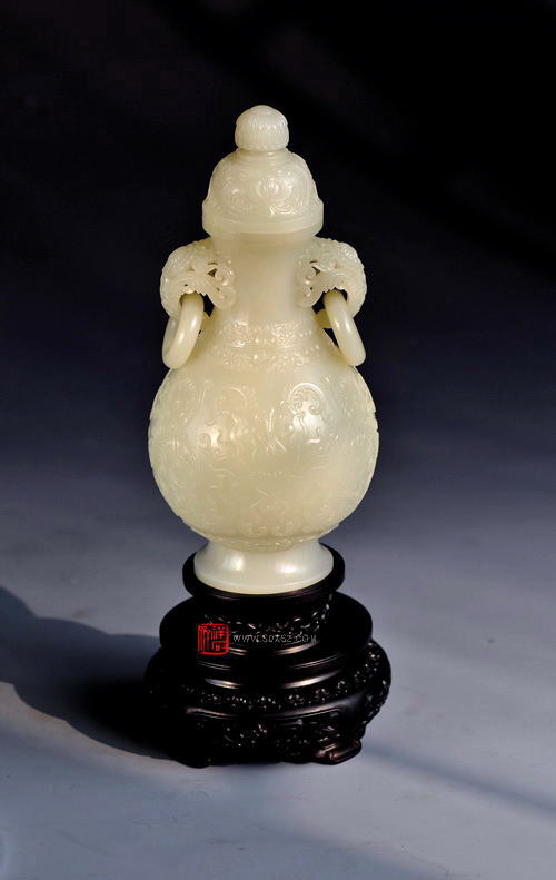 新疆和田玉白籽玉 双耳瓶 9x9x19cm