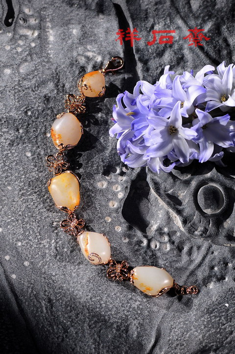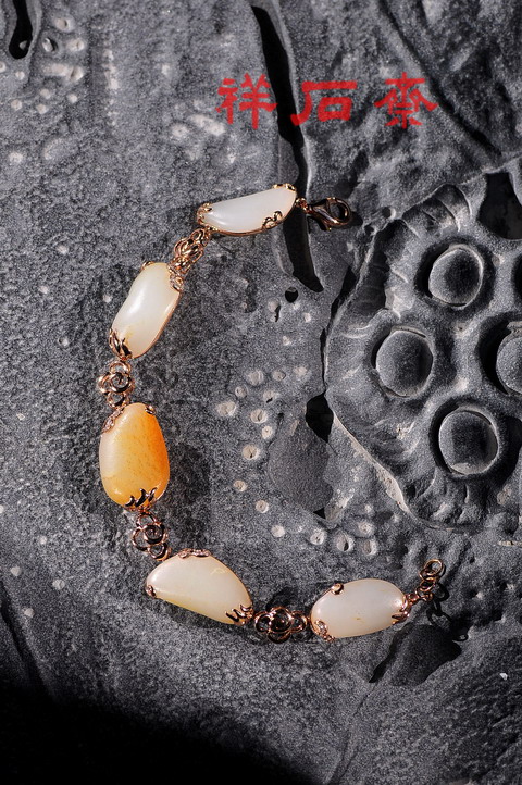 新疆和田玉籽玉原石 金镶玉手串 31g