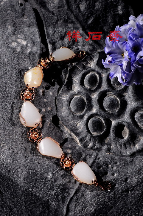 新疆和田玉籽玉原石 金镶玉手串 33g