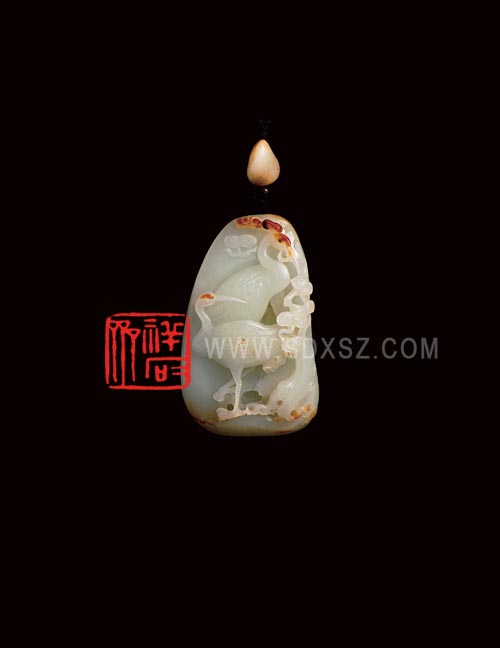 新疆和田玉白籽玉 松鹤延年