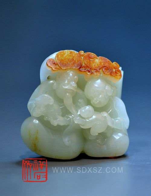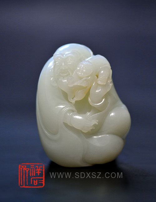新疆和田玉青白籽玉 寿公喜婆 95g