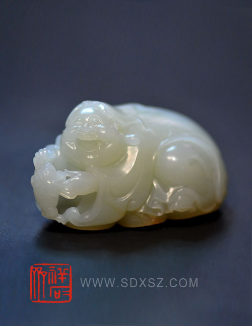 新疆和田玉白籽玉 刘海戏金蟾 80g