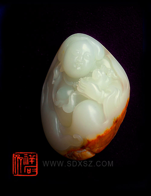 新疆和田玉白籽玉红皮仕女
