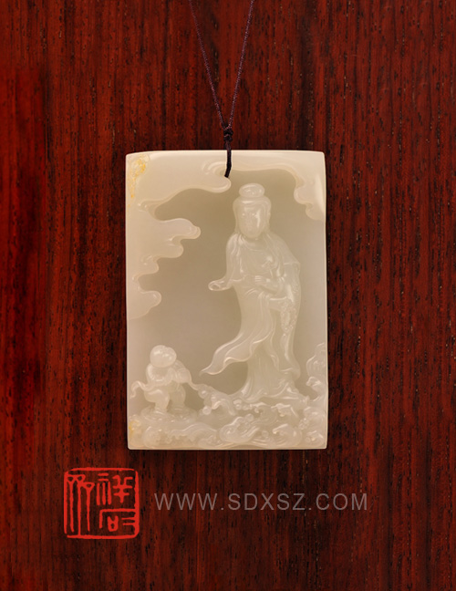 新疆和田玉白籽玉 童子拜观音牌 82g