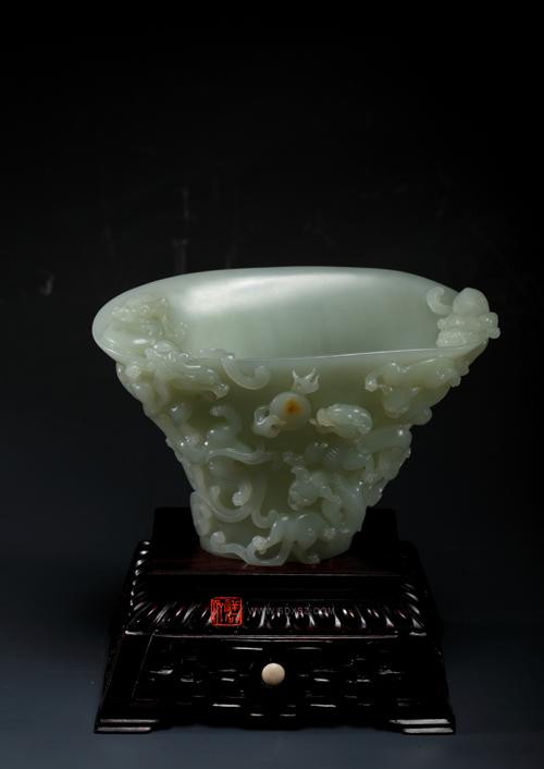 新疆和田玉青白籽玉 九龙杯 15x10x8cm