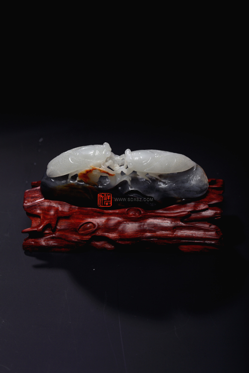 新疆和田玉青花籽玉 鸣蝉