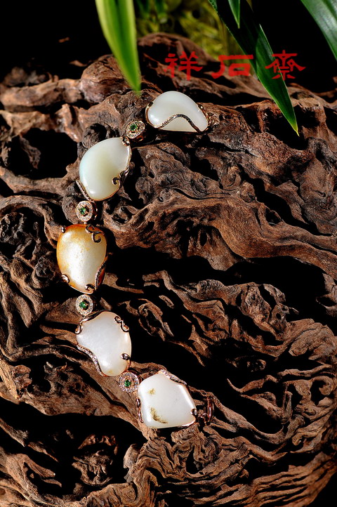 新疆和田玉白籽玉原石金镶玉手链 36g