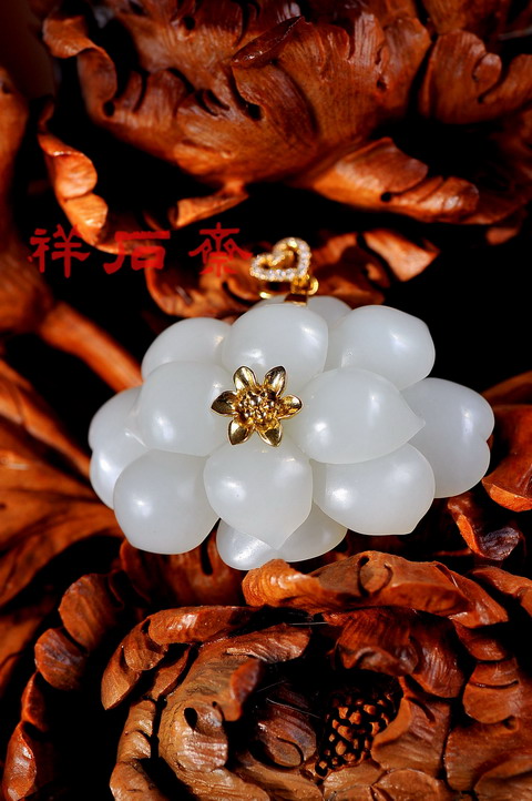 新疆和田玉白籽玉原石 18k玫瑰金镶钻镶红宝挂坠 23.34g