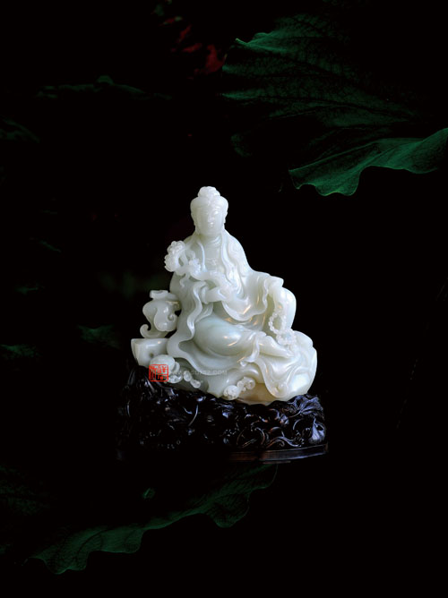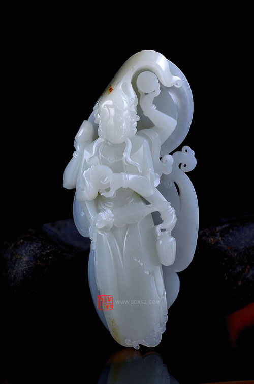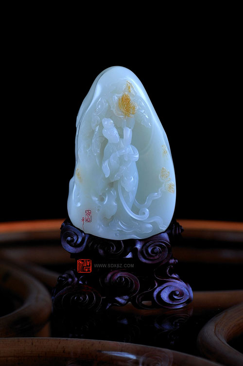 新疆和田玉白籽玉 仕女戏蝶 462g