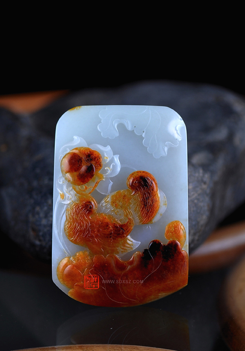 新疆和田玉青白籽玉 和和睦睦牌