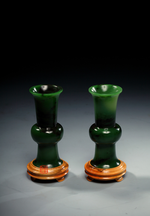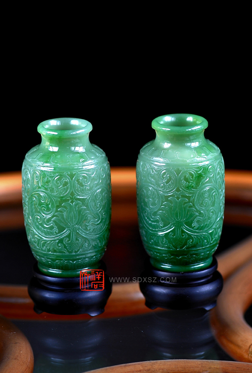 新疆和田玉碧玉 对瓶8.5x4.5com