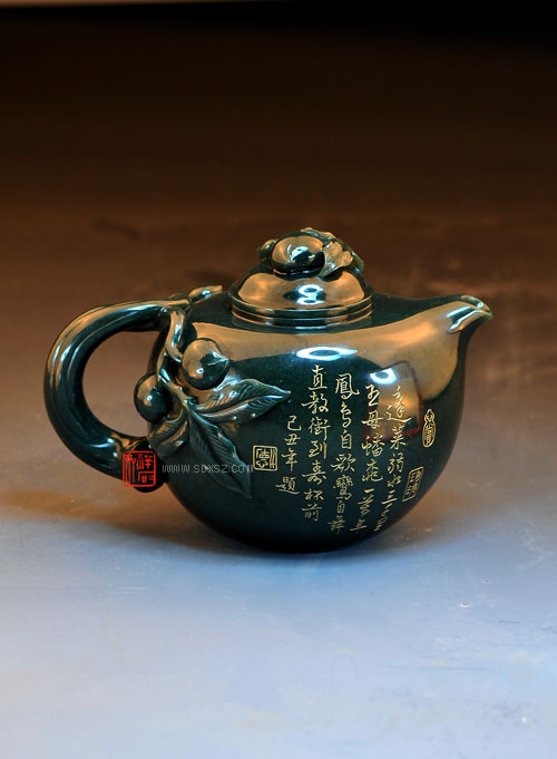 新疆和田玉青碧玉 仙桃壶 15x9x9