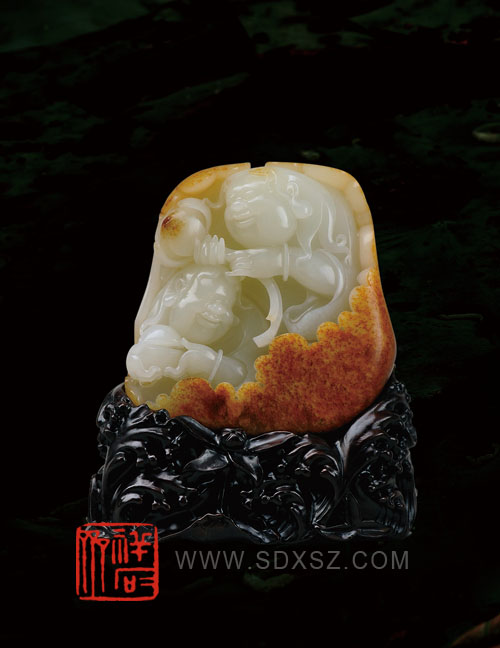 新疆和田玉白籽玉 和合二仙 649g