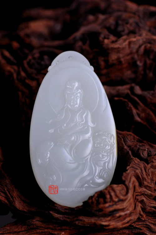 新疆和田玉白籽玉 文殊菩萨牌 87g