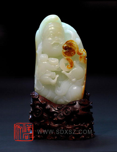 新疆和田玉白籽玉 财神 283g