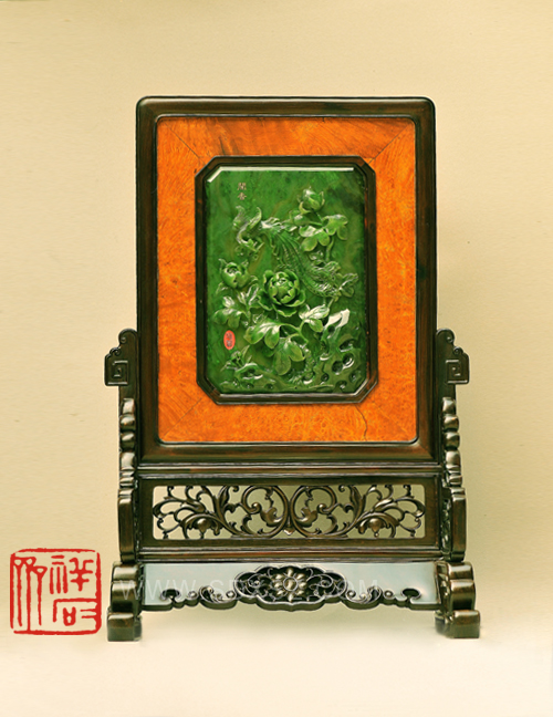 和田玉碧玉 花开富贵插牌