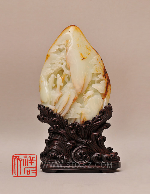 新疆和田玉白籽玉 虎溪三笑山子