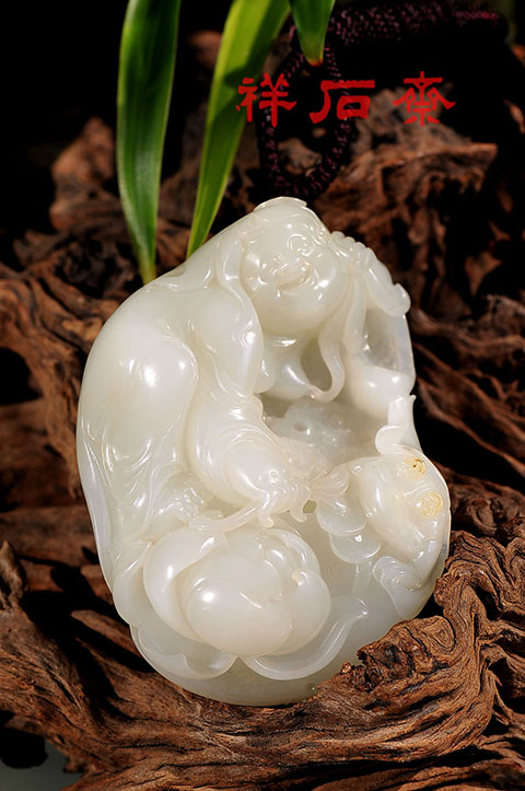 新疆和田玉白籽玉 刘海戏金蟾 238g