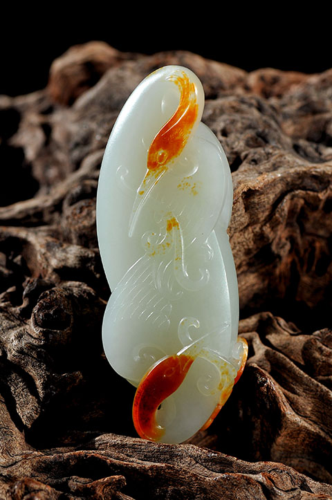 新疆和田玉青白籽玉 双鹤起舞 40g