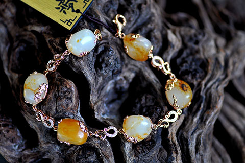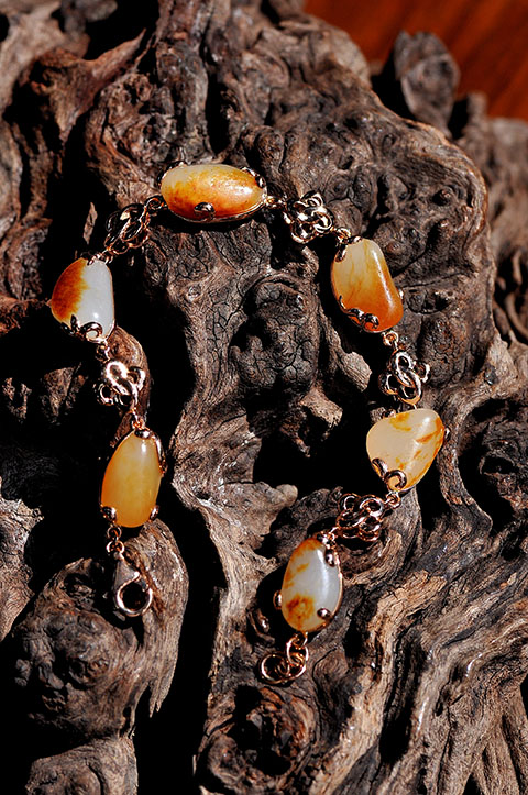 新疆和田玉白籽玉 原石手链 18k玫瑰金镶嵌 20.88g